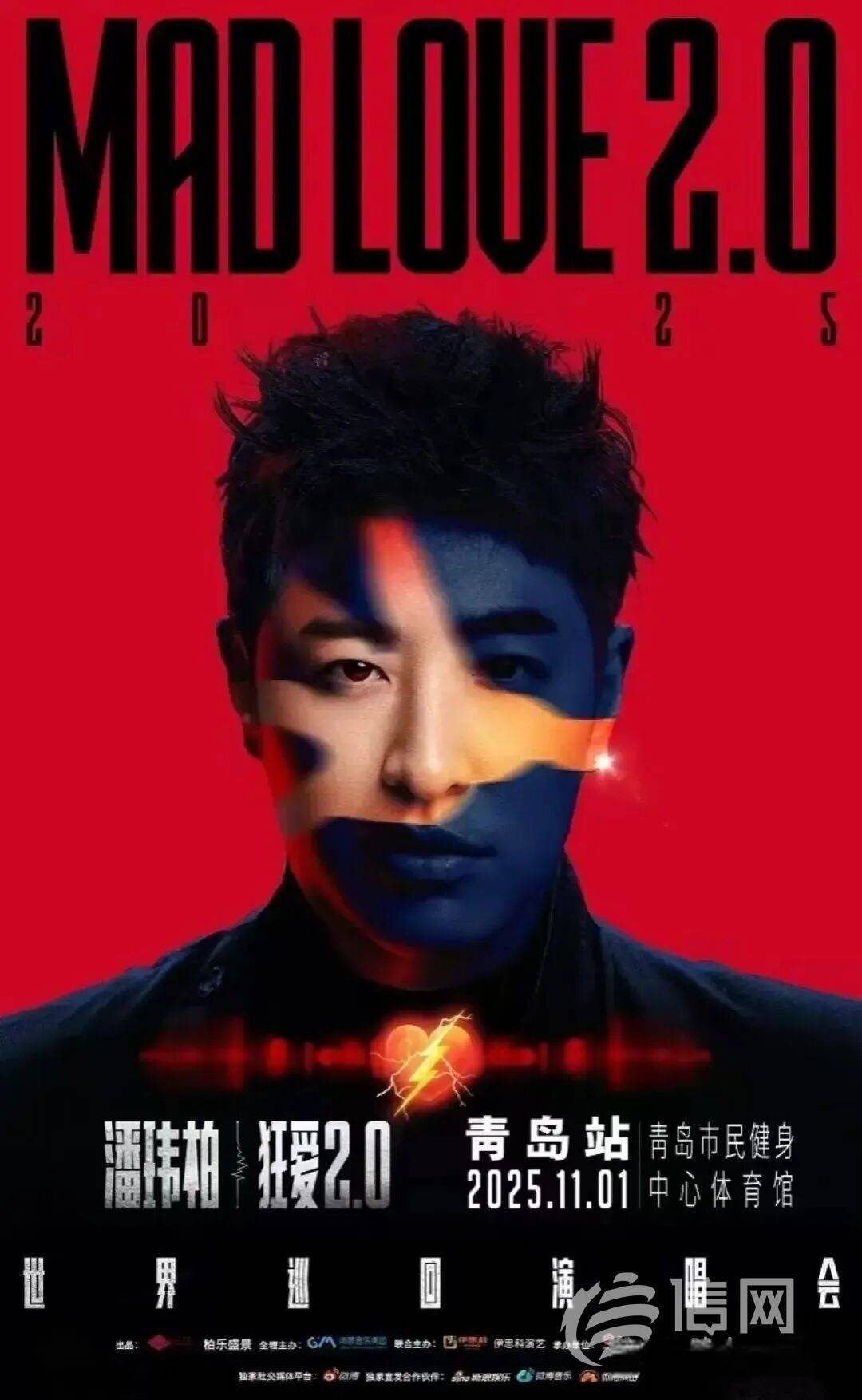 9月22日15:22,潘玮柏“狂爱2.0”巡回演唱会青岛站正式开启售票,演出定于11月1日19:30在青岛市民健身中心体育馆举行。此次演唱会由柏乐盛景出品,GN通耀历即主办,甲予汽等单位协办,大麦为票务总代。