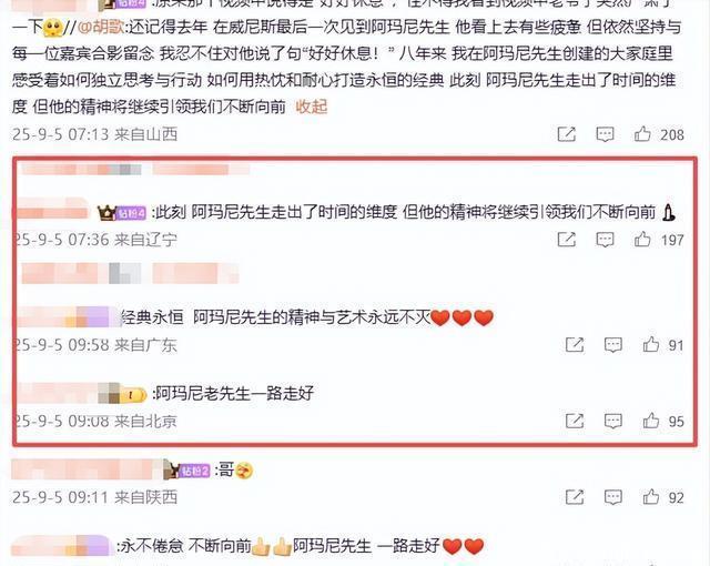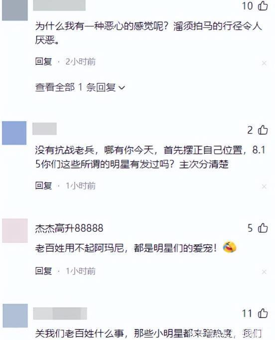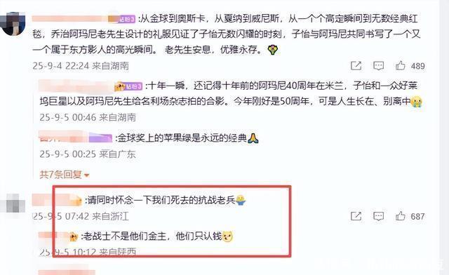 她也算是遇到了类似的情况,在9月4日当天,她也发布了一条动态来纪念已经离世的阿玛尼, 但评论区里却也因此有了不和谐的声音,直言为何不去怀念一下当初的抗日英雄呢?