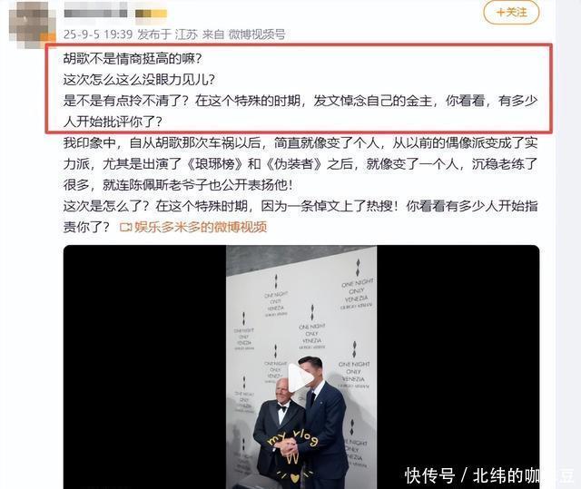 从而就有网友发文质疑胡歌这番操作,怀疑他有点拎不清大小王了,他自己有没有想到咱们不好说,但这件事确实让他翻车了, 而同样悼念并翻车的,还有章子怡了。