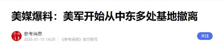 参考消息网转引美国阿克西奥斯新闻网站报道:《美军开始从中东多处基地撤离》2026年1月15日
