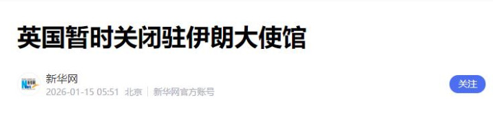 参考消息网转引法新社报道:《英国宣布“暂时关闭”驻德黑兰使馆》2026年1月15日海通众合